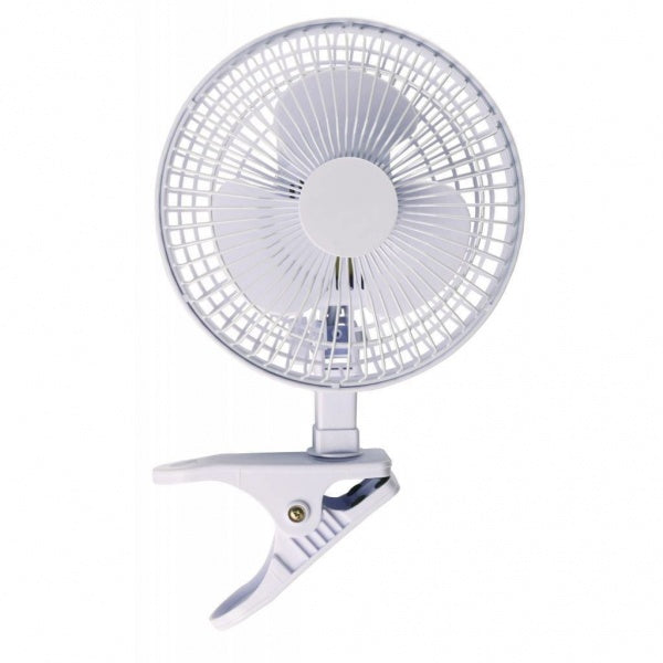 Product Details Space-saving design is ideal for your greenhouse, kitchen, office, nursery, and more—any area where space is limited and air circulation is desired. The spring-loaded plastic clip won't mar surfaces and the adjustable head directs air flow where you need it. It features durable plastic blades and the easily-removable safety grill makes cleaning a breeze. Features 6" adjustable angle head rotates 360 degrees 2 speed settings Strong, spring-loaded clip Smooth and quiet operation 120V/15W 6' power cord Specifications Shipping Weight2.4 lbs. Units/pallet300 Package Dimensions6.0L x 8.0W x 8.0H Barcodes10638104004128 (GTIN) 638104004121 (UPC-A) Diameter6 Voltage120