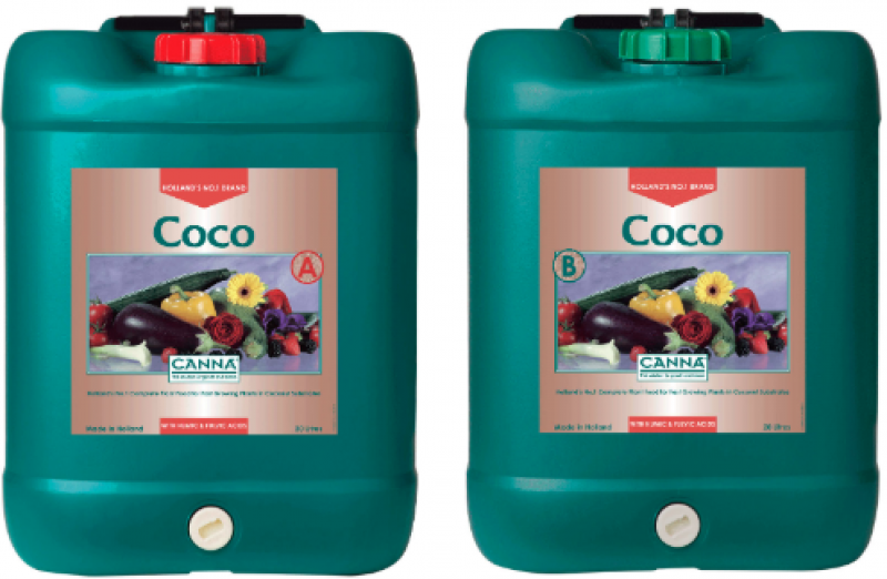 "CANNA Coco A & BCANNA Coco A & B is a complete professional nutrient for growing plants in coco. It contains all the essential elements for optimal growing and flowering. Thanks to the special characteristics of coco substrate CANNA COCO doesn’t have a Vega and Flores variant, but there is one unique formulation for both the growth and blooming phase. We can’t make things easier! CANNA COCO is easy to use, dissolves directly and is extremely suitable for growing in all watering systems, like for example 'run-to-waste' systems, flood systems and ebb and flow systems. Rich in high-value elements After years of research into potting mixes, drainage and leaf analysis, CANNA has succeeded in being the first to develop a fertiliser that is specifically tailored to the characteristics of cocos substrates. CANNA COCO is composed of high value minerals. CANNA COCO contains natural chelates, humic and fulvic acids which give the plant optimum nutrient absorption. Growers throughout the world have been enthusiastic for years about the explosive growth and profuse flowering with CANNA COCO. Why A&B nutrients? CANNA COCO nutrients consist of two parts, an A part and a B part. We separate these parts for a reason. As it happens, if some of the elements in part A and B are thrown together at the same time, they clog together. The plant cannot absorb this. That's why you should first add the A component and then the B component!"