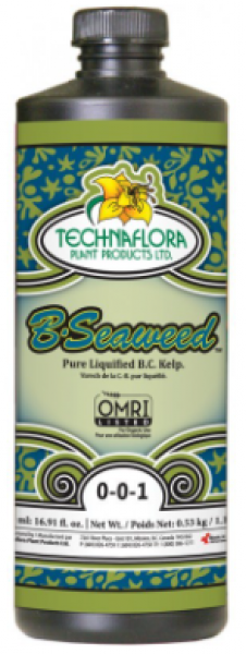 B. Seaweed is an optimal plant growth stimulant. Technaflora's exceptional liquid extract is made from 100% pure, organic British Columbia kelp (Macrocystis integrifolia). Years of practical experience have taught British Columbia's gardeners that the use of seaweed facilitates vital and flourishing growth. Sea kelp is the source of more than 60 nutrients, vitamins, and hormones that support and strengthen hearty, thriving plants. In addition, sea kelp aids in the absorption of nutrients from the soil. B. Seaweed is an aggressive, organic way for growers to supplement their regular feeding programs. Technaflora's kelp is harvested by hand and in accordance with all government regulations, preserving the integrity of the seabed for future generations. B. Seaweed is ultra-concentrated and must be diluted with water for use in irrigation solutions or as a foliar spray. Ideal as an additive for organic tea mixtures, versatile B. Seaweed is also a superior soil tonic, and can be added to the hydroponic reservoir with confidence. Anyway you use it, B. Seaweed is a naturally organic way to boost growth and achieve robust healthy plants.